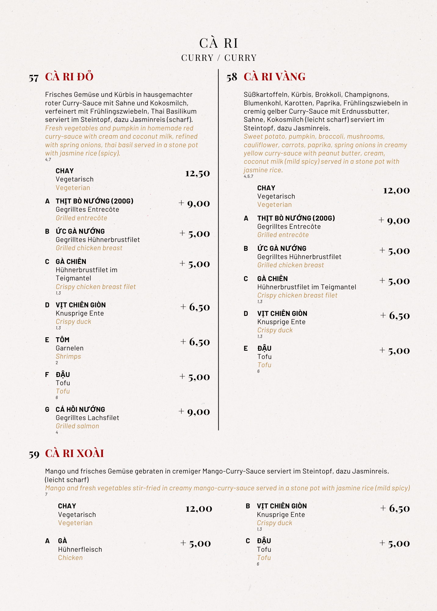 1 Gluten | 2 Krebstiere | 3 Eier | 4 Fisch | 5 Erdnüsse | 6 Soja | 7 Milch | 8 Schalenfrüchte | 9 Sellerie | 10 Senf | 11 Sesam | 12 Schwefeldioxid | 13 Lupine | 14 Weichtiere